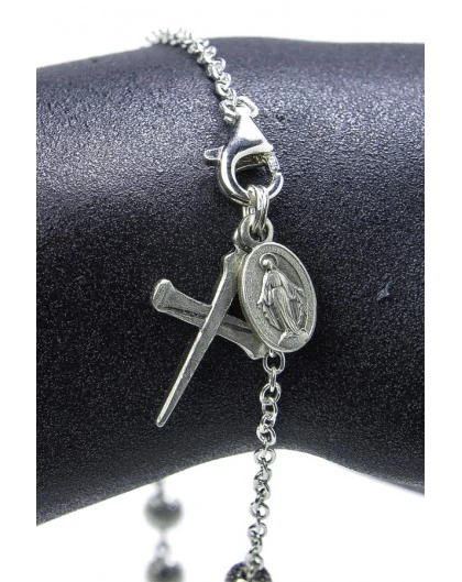Rosary Bracelet entirely made in Sterling Silver 925. It has a small Crucifix and a Miracolous Medal