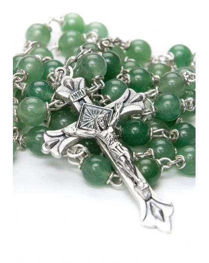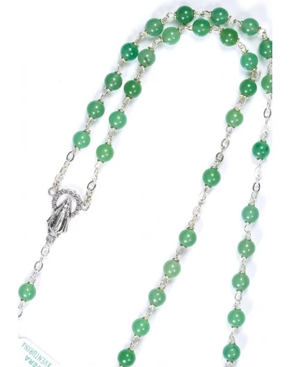 Rosary in Aventurina: a light green trasparent stone.