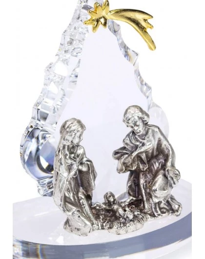 Christmas tree made with components. It has a small Nativity Scene on front.