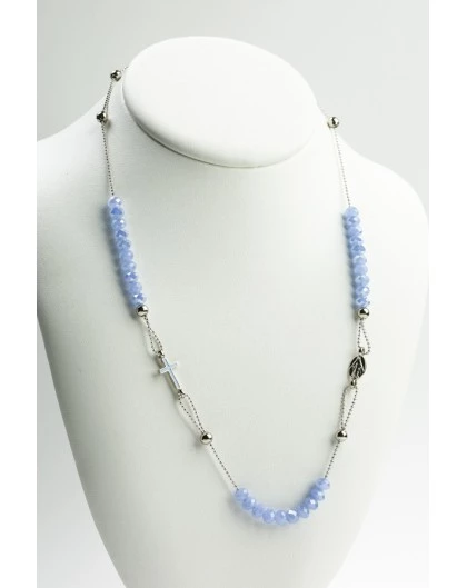 Crystal Necklace With Enamelled Crucifix And Miracolous Medal – Sky Blue – Metal Silver
