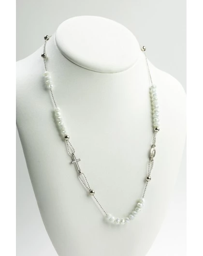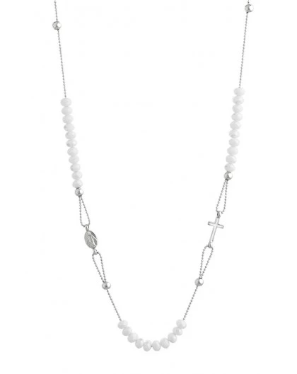 Crystal Necklace With Enamelled Crucifix And Miracolous Medal – White – Metal Silver