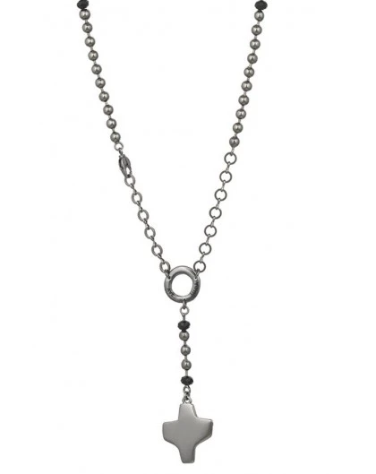 Dark metal Rosary Necklace, with design Crucifix, Center and Crystal Paters.