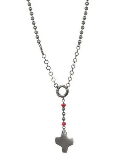 Dark metal Rosary Necklace, with design Crucifix, Center and Crystal Paters.