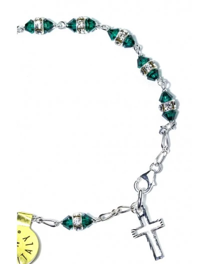 Deep green strass Silver Rosary Bracelet