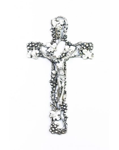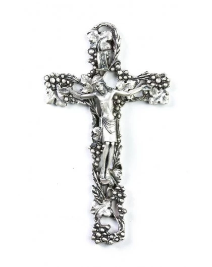 The Christ’s Body on a Crucifix made by wine grapes, remembering the symbols of Eucharist. Heavy solid metal Crucifix.