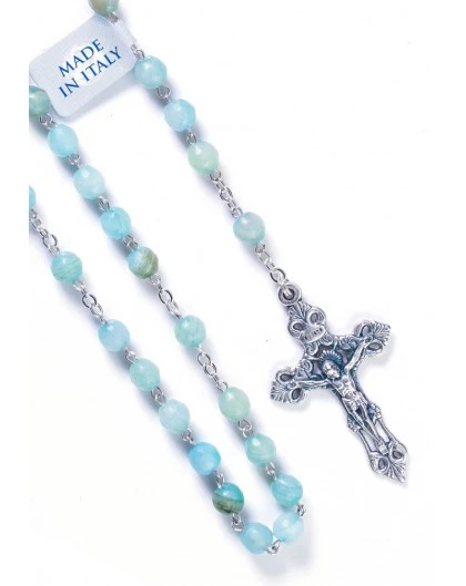 Rosary in faceted Green Water Agate. Wonderful old style Crucifix.