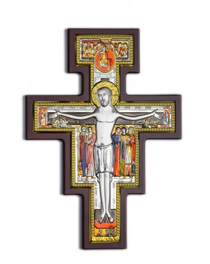 Crucifix Bilaminate Sterling Silver plaque on a wooden base