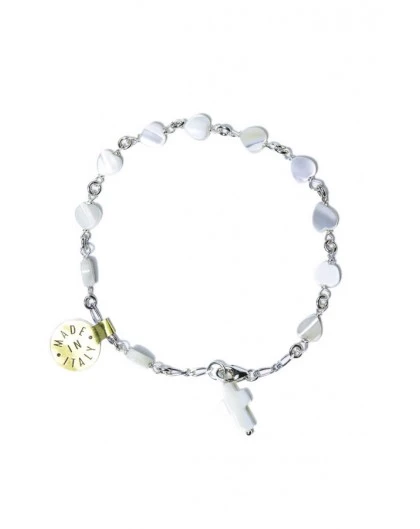 Heart-shaped beads Rosary bracelet made in real Mother of Pearl,
