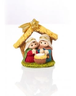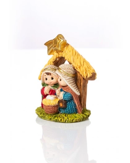 Nativity for children in a small hut full of color