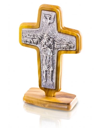 Pope Francis Pastoral table Cross in Metal and Olive wood