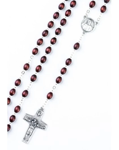 The Pope Francis Rosary, has the Pope medal as center and the Good Shepherd Crucfix.