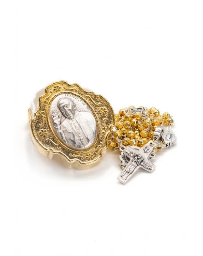 The Rosary Box has the image of Pope Francis on it, the Rosary has the Pope Francis Crucifix