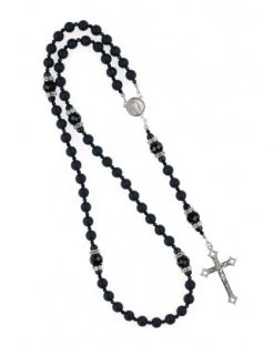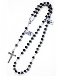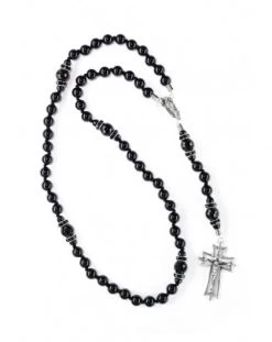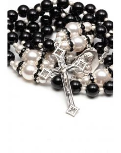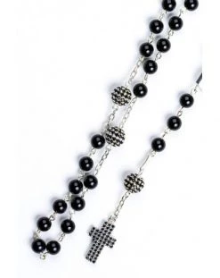 Black Onyx, Pearls, Sterling Silver 925 Precious Crucifix And Center