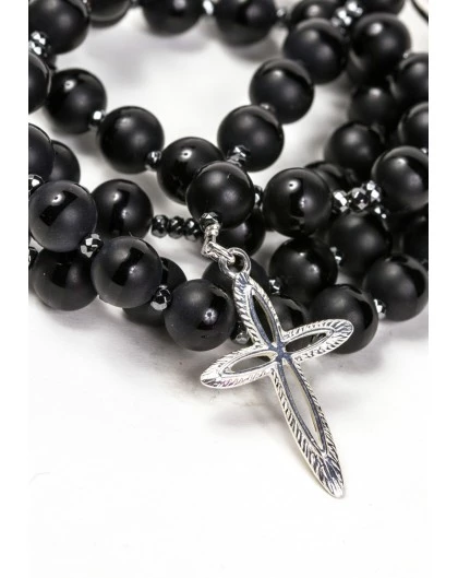 Exclusive Sterling Silver 925 with Satin Onyx Black Beads Rosary Necklace