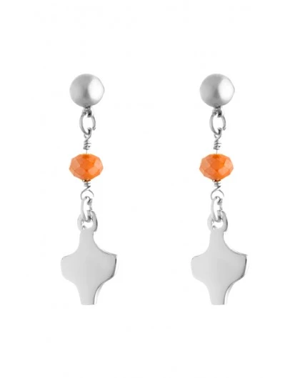 Silver metal Earrings with Crystal beads and Crucifix pendant