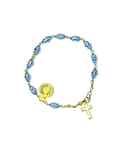 Sky blu strass gold Rosary Bracelet