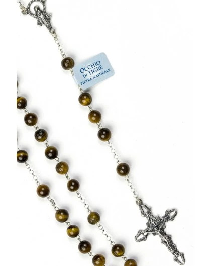 Sterling silver Rosary with 6 mm Tiger Eye beads with wonderful red-brown to gold reflections.
