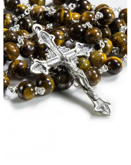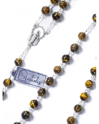This Rosary is made entirely in certified sterling silver 925, with Tiger’s Eye 6 mm beads. It is a preciuos Rosary with special changing colors.